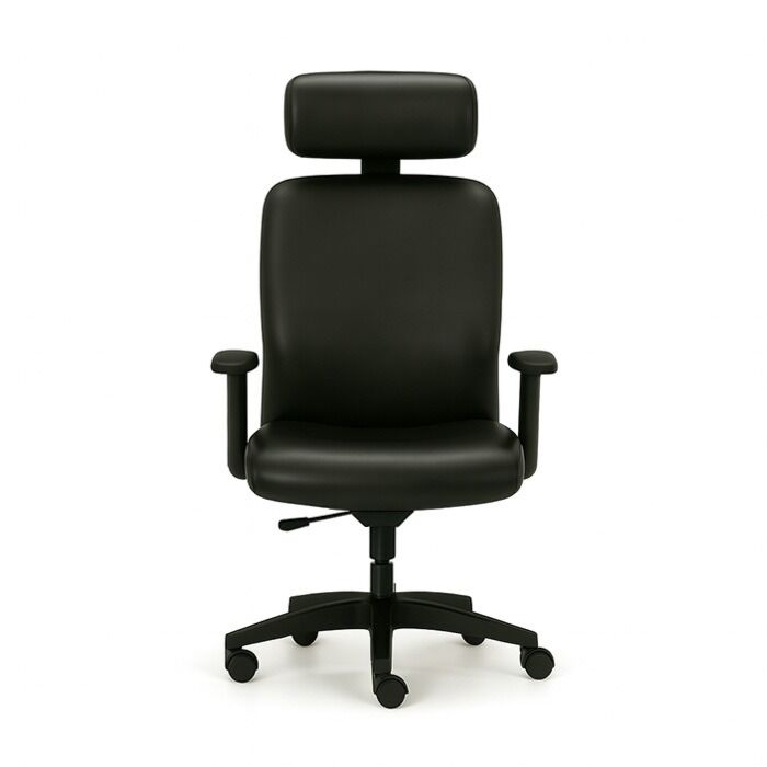 Klassischer Business-Stuhl mit mehrfach arretierbarer Synchronmechanik, voll gepolsterter Sitzfläche und höhenverstellbarer Kopfstütze für ergonomischen Komfort im Büroalltag. Robust, höhenverstellbar und belastbar bis 120 kg – die solide Wahl für professionelle Arbeitsumgebungen.